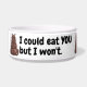 Tigela de Alimentação e Água Personalizada Divertida do Urso Zangado apresenta um desenho animado de um urso zangado dizendo coisas como "EU POSSO pegar minha própria comida" e "Eu poderia comer VOCÊ, mas não vou". e "Nome é URSO. (Não 'Teddy.')" Esta é uma tigela tão fofa. Você pode personalizá-la alterando as imagens e qualquer um dos textos e adicionar seus próprios textos e imagens.