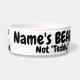 Tigela de Alimentação e Água Personalizada para Animais de Estimação Urso Zangado apresenta uma caricatura de um urso zangado dizendo coisas como "EU PODERIA pegar minha própria comida" e "Eu poderia comer VOCÊ, mas não vou". e "Nome é URSO. (Não 'Teddy.')" Esta é uma tigela tão fofa. Você pode personalizá-la alterando as imagens e qualquer um dos textos e adicionar seus próprios textos e imagens.