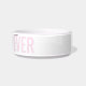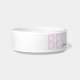 Uma tigela de gato rosa com "MELHOR CAT EVER" e o nome do seu gato personalizado em uma camada de texto de letra chic e elegante com script de caligrafia. Insira qualquer texto personalizado que você quiser para o plano de fundo e a camada superior do texto para criar sua própria comida de cerâmica rosa ou tigela de água personalizada. Veja nossa coleção de tigelas coordenadoras e arranje um set!
