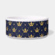 Give your pet the royal treatment with this elegant personalized dog bowl! Featuring a rich navy background decorated with gold crowns and flourishes, this stylish bowl adds a touch of luxury to any feeding area. The center includes a customizable bone-shaped name plate so you can add your pet’s name for a truly unique touch.