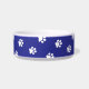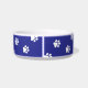 This pet bowl is shown in a cute dog paws print.