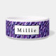 Esta tigela cerâmica de animais de companhia é mostrada num padrão de abstrato púrpura multicolorido. Tamanho Grande Mostrado Personalize este item e altere o texto para o seu. Imagem do stock