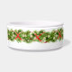 Esta tigela de animais de estimação de grande porte é mostrada com um impressão festivo de festas de garland em abeto e confundida com fitas vermelhas. Personalize este item ou comprar como está.
