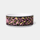 Esta tigela divertida e fabulosa para um gato, um cão ou outro animal de estimação especial é perfeita para o seu bebê de pele precioso com a sua aparência na moda. Esta design apresenta um padrão único de pele-leopardo em rosa, preto e ouro. Personalize este cão de estimação ou gato de estimação com o nome do seu cão ou gatinho.