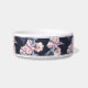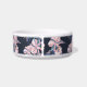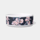 Para os animais de estimação com mais aloha, esta linda ilha inspirada em tigela de cão ou gato apresenta um padrão de flores tropicais de orquídeas e folhagem botânica em tons de rosa-pincel, lavanda e azul em um rico fundo azul-marinho. Personalize com o nome do seu animal de estimação em correspondência com a letra de marinho escuro.
