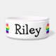 Esta tigela cerâmica de cachorro tem duas pegadas arco-íris e pode ser personalizada com o nome do seu cachorro. Escolha qualquer estilo de fonte e cor que você preferir em vez do preto mostrado aqui. Você pode mover as impressões da pata e ajustar seu tamanho também para fazer este prato de cachorro exatamente para o seu cachorro. Faz um presente único e divertido para qualquer pai de cachorro!