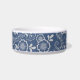 Uma tigela de animais de estimação com padrão de renda floral vitoriano, elegante e azul francês. Você pode personalizar a cor e o nome do plano de fundo com uma cor de sua escolha.