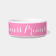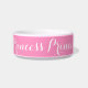 Uma tigela de tamanho médio mostrada em branco com uma fita de destaque rosa-quente de cor sólida com texto de princesa. Personalize esta tigela ou comprar como está. Escolha entre uma tigela de tamanho médio ou grande.