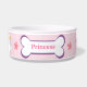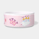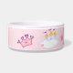 Uma tigela de comida de cão super fofa com uma coroa princesa, castelo de princesa, flores cor-de-rosa e osso de cão com o nome do seu cão no osso.