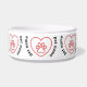 Descubra nossa charmosa tigela de cachorro personalizada apresentando um design simples, mas sincero. Mostrando um contorno simétrico do coração vermelho que inclui uma impressão central de pata vermelha com linhas uniformes sobre um fundo branco limpo, esta tigela combina elegância e amor para seu amigo peludo. Perfeito para donos de animais de estimação que buscam um na moda e acessório significativo para seu cachorro.