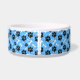 A tigela de animais de companhia é mostrada com um impressão de patas azuis. Escolha entre tamanho pequeno ou grande. Personalize este item ou comprar como está.