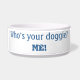 Você vai adorar esta tigela de cachorro adorável e engraçada para seu membro da família de pelúcia canina! O texto é "Quem é o seu cachorro? EU!" A palavra "ME" tem olhos bonitos no topo.