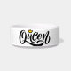 Uma tigela de na moda com a palavra "Rainha" elegantemente escrita em preto, adornada com uma pequena coroa ouro.