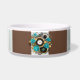 Relógio antigo e patenteado, adornado com joias, mãos de ouro e algarismos latinos com rosa de turquesa sobre fundo castanho e listrado. Estilo Steampunk.