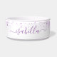 Um fundo branco na moda, decorado com poeira brilhante púrpura. Personalize e adicione o seu nome escrito com um script de estilo alfanumérico com letra de tendência com alternâncias. Para manter as hastes, exclua apenas o nome da amostra, deixe os espaços ou emoji na frente e depois do nome.