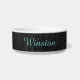 Tigela Script de Teal Botânico Preto do Nome de Pet Perso