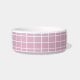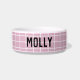 Padrão de grade geométrica moderna personalizável tigela para animais de estimação em um rosa feminino. Esta tigela é um acessório super fofo para o seu animal de estimação ou um presente ideal para o dono do animal de estimação na sua vida, Personalizado com nomes em uma paleta de cores rosa e acessórios correspondentes estão disponíveis.