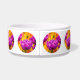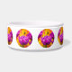 Violeta colorida, tulipas roxas, cor-de-rosa num leito de flores. Praticamente todas as cores do arco-íris estão presentes. Bela e positiva cena floral. Tigela para animais de estimação.