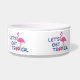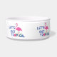 Esta divertida e fofa tigela de cachorro com o gráfico Vamos ter Tropical com flamingos rosa é perfeita para o seu animal de estimação. Design por Inge Lewis. Ótimos presentes para sua família, amigos ou visitantes. Encontre mais itens correspondentes na boutique / loja ingeinc.com.