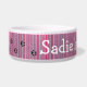 Grande presente feito sob encomenda do animal de estimação para proprietários do cão ou do gato. Adicione a imagem do seu cão a esta bacia bonito do cão com seus nome e impressões da pata.