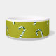 These pet bowl with winter illustration of candies on a green background will be a great addition to cozy winter time!