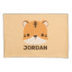 Uma design para animar o seu dia. Este design apresenta uma ilustração de desenho animado de tigre com nome personalizado no estilo de fonte sans serif moderno marrom em fundo laranja pastel. Presentes personalizados perfeitos para crianças.