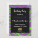 Um fundo preto acentuado por uma borda de riscas de tigre roxas e verdes. Personalize com todas as informações de aniversário conforme desejado.