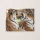 Quebra-cabeça de jogo mostrado com uma impressão de fotos de lindos tigres. Personalize este item ou comprar como está. Imagem do stock