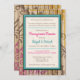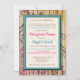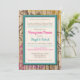 Topical Honeymoon Chá convites para um casal ou uma noiva para ser, com um padrão de madeira tiki com designs coloridos de tatuagem em marrom, fuchsia rosa e amarelo na madeira. Seus detalhes são impressos na frente em uma área de quadros de turquesa esboçada no centro, sobre a ilustração de madeira de tiki. Esta design também está do lado de trás. Eles são o destino tropical perfeito para os convites para a celebração do Chá da lua de mel.