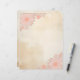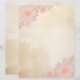 Tinta bronca e papel de lavagem com lindas flores cor-de-rosa-casca nos cantos superior esquerdo e inferior direito criam belos papéis de carta. Um pouco grunhido, e perfeito para a sua correspondência. A parte de trás tem a mesma tinta e lava design, sem os cantos florais.