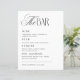 Elegant wedding bar drink menu sign featuring refined luxe script typography and a timeless minimalist black and white layout. Perfect for signature cocktails, reception bars, rehearsal dinners, and sophisticated wedding celebrations, this classic design adds a polished focal point to the bar area. A beautiful choice for couples seeking a classy wedding drink menu sign with an enduring, coordinated, and effortlessly elegant reception style.