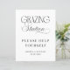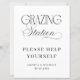 Elegant grazing station wedding sign featuring refined luxe script typography and a timeless minimalist black and white layout. Perfect for charcuterie tables, cocktail hour displays, reception food stations, and sophisticated wedding celebrations, this classic flat sign adds a polished focal point to curated dining areas. A beautiful choice for couples seeking a classy grazing table wedding sign with an enduring, coordinated, and effortlessly elegant reception style.