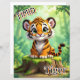 Uma fotografia adorável para o quarto de uma criança. Um belo desenho de um tigre bebê sentado na floresta parecendo adorável.