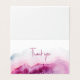 Cartões de agradecimentos elegante, com uma aquarela contemporânea agate design em tons rosa vibrante, mauve e lavanda macia. O trabalho de arte capta a beleza dos padrões geométricos naturais, com delicadas texturas cristalinas colocadas sob um espaço branco nítido. Centrado no topo, "Obrigado" aparece em uma escrita ousada e moderna em uma magenta coordenadora, emprestando um toque sincero e na moda. A placa dobrada é fácil e oferece amplo dentro de espaço para vazio para sua mensagem pessoal, fazer que seja uma escolha refinada para casamentos, chás, negócios ou qualquer ocasião especial. Perfeito para aqueles que buscam uma mistura de sofisticação, cor e um talento artístico único.