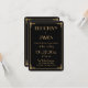 Excelente preto-e-laranja-redondo minúsculo, cor-de-laranja-dourada Gatsby Art Deco convites para casamento (3,5 polegadas por 5 polegadas), quando a Noiva e o Groom estão alojados, com texto alterável