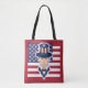 Saco com ilustração do Tio Sam com a bandeira americana como pano de fundo, 4 de julho design patriótico por Maxi Harmony / Radka Kavalcova, versão vermelha