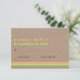 A tipografia moderna e listra a resposta RSVP de casamento rústico e colorida minimalista que apresenta o texto em uma fonte moderna grande em pêssego de coral e chartreusa cores verdes e listras em papel de artesanato de papelão. Texto em castanho. Em vez da palavra "e" há o símbolo de mais num círculo de coral. Este modelo de casamento moderno e contemporâneo, personalizável, faz parte de um jogo de casamento ou de uma coleção, tem uma sensação vintage/retrô para ele e é perfeito para um primavera casual e um outono ou um casamento de outono. Observe que não há cartolina real apenas IMAGENS IMPRESSAS.