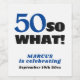 Típica Simples Moderna 50º Rótulo de Vinho de Aniversário. Celebração do 50º aniversário personalizável rótulos de vinho com uma citação engraçada e motivacional 50 E daí? Este rótulo de vinho moderno é uma ideia de presente de excelente para uma pessoa que ama vinho e está comemorando o 50º aniversário. O texto está em azul e preto. Você pode alterar o número de idade e qualquer texto.