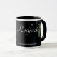 Esta caneca da campainha tem o punho e o bordo no preto. Está disponível em um tamanho de 325 ml. Esta caneca é máquina de lavar louça e cofre forte da microonda.