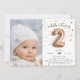 Convite de festas adorável para a segunda festa de aniversário da sua pequena, apresenta um balão "2" de ouro rosa sobre um fundo de pontos de ouro, ouro rosa e confete preto. Personalize com os detalhes da festa de aniversário de dois anos em letras negras modernas e caprichosas, e adicione uma foto favorita da aniversariante no lado esquerdo. Cartões inversos a rosas sólidas.
