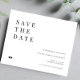 O casamento Mínimo Elegante de tipografia contemporânea a preto e branco do BUDGET salva o cartão de data. ++++++++++ Adequado para qualquer estação e tema. +++++++++ Fácil de personalizar com o seu texto! +++++++ LEIA ISTO ANTES DE COMPRAR! Este é um cartão de casamento de barato orçamentário impresso em uma folha de papel (cada folha tem um cartão). +++ Para obter a melhor qualidade de preço, nosso conselho é escolher o tipo de papel Semi-Gloss (é espesso o suficiente para ser usado para papelaria) +++ Se você precisar de envelopes, escolha a OPÇÃO ENVELOPE. ++ Verifique duas vezes todas as informações e a ortografia do seu texto porque você receberá exatamente o que você vê - ninguém mais verificará nada antes de imprimir. +++ Esta placa foi projetada para o tamanho de 4,5" x 5,6". Caso você escolha outro tamanho do cartão e o texto saia da página, tudo precisa ser corrigido antes de adicionar o produto ao carrinho. Peça ajuda ao Serviço de Design ao Vivo.