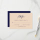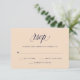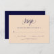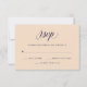 Essas placas RSVP de casamento simples e mínimas apresentam caligrafia azul marinho em um fundo cor-de-rosa.