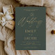 Budget Emerald ou Forest Green e Dourado Faux Foil Wedding Primavera ou Summer Wedding Invances - inclui uma bela e elegante tipografia com uma moderna cor simples e clássica para a celebração especial do Dia do Casamento.