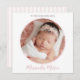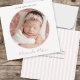 Esta design apresenta um anúncio de bebê recém-nascido com fotografia e bebê, um simples modelo de boas-vindas para pais com estatísticas, um mínimo minimalista de tipografia, um novo cartão de gravidez para bebês, um roteiro de caligrafia para na moda, com listras fofinhas e fofinhas cor-de-rosa, fotografia para bebês, um anúncio de bebê único e quadrado, cartões personalizados personalizados, anúncios de nascimento de bebê personalizados