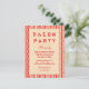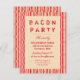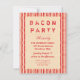 Um convite divertido para uma festa de bacon ou um CHURRASCO ou algo parecido com um fundo de fita de bacon desenhado e um texto de convite para tipografia legal em vermelho.