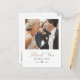 Este modelo de cartão postal de agradecimento de casamento com foto simples e elegante apresenta um design limpo e moderno. Escolhemos um tom de ouro elegante chamado California Gold para "Obrigado" na frente e "Amor e Agradecimento" no verso. E seus nomes e data na frente estão em preto. Mas você pode alterar a cor deste ou de qualquer outro texto ou fonte para se adequar ao seu estilo. Personalize-o com sua foto favorita e torne-o exclusivamente seu! No verso, você também pode alterar ou excluir o texto como desejar. Você pode decidir excluir a mensagem "Amor e Agradecimento" no verso, ou alterar a redação, ou a cor. Abaixo disso, colocamos um texto temporário no verso para você substituir pela sua mensagem. Mas, por favor, não se sinta restrito por isso. Se preferir deixar essa parte do verso em branco para que possa escrever uma nota manuscrita em cada cartão, você pode fazer isso. Basta ter certeza de excluir nosso texto temporário em qualquer caso! Escolhemos um cinza escuro elegante para o endereço de retorno e o texto da mensagem no verso, mas você pode alterar a cor para preto ou qualquer outra que desejar. Para um visual ainda mais simples, você pode optar por excluir o "entregar