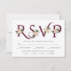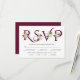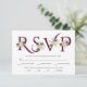 A tipografia burgundy elegante e o cartão RSVP de flor branca com opção de refeição. Este elegante design de casamento apresenta o "RSVP" em uma fonte decorativa em vermelho burgundy com uma flor rosa. A parte de trás é de cor sólida e farinhenta.
