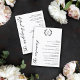 Elegante programa de casamento 4,5 x 6,25 em um design de tipografia preto e branco com um monograma de coroa de louros e belas fontes. Programa de casamento tipográfico com um monograma verde e lindas fontes. Programa de casamento plano com um monograma elegante e belas fontes e detalhes verdes em preto contra fundo branco.