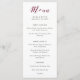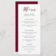 Este maravilhoso menu de casamento apresenta uma caligrafia colorida marsala/burgundy junto com texto preto moderno, num fundo branco elegante. Perfeito para um casamento formal e tradicional com um giro moderno!