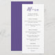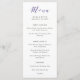 Este maravilhoso menu de casamento mostra uma caligrafia violeta e roxa, juntamente com um texto preto moderno, sobre um fundo branco elegante. Perfeito para um casamento formal e tradicional com um giro moderno!